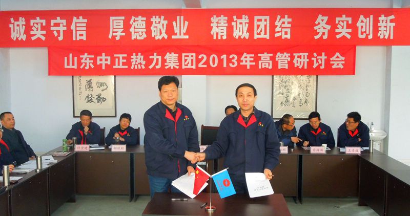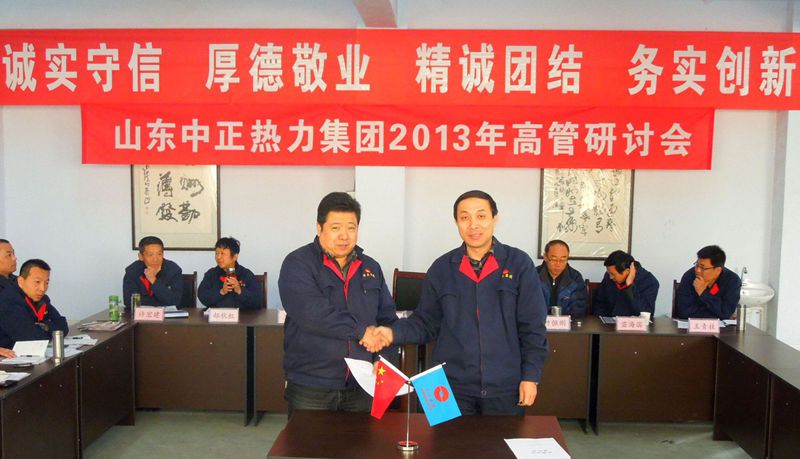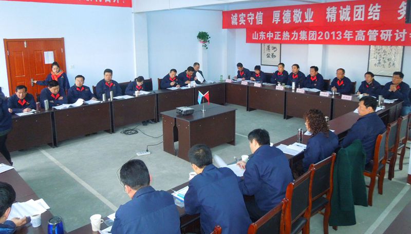 山東中正熱力集團2013年高管研討會于2013年3月29日上午8:00在集團總部三樓會議室召開,會期三天。會議由集團公司董事長李廣法主持,集團公司各部門、各權屬公司領導參加了會議。會議上,各單位、各部門匯報了2012年度工作報告和精細化管理實施方案;總經理蔣俊卿作年度工作報告,公布兌現2013年度年薪,與各獨立核算單位和部門簽訂2014年度安全、經營目標責任書;討論通過了集團中長期規(guī)劃(2014-2023年度)及《全面推進集團精細化管理,為中正品牌和效益的提升而努力》、《集團資本運營管理實施意見》、《關于完善市場體系建設的實施意見》三個報告。